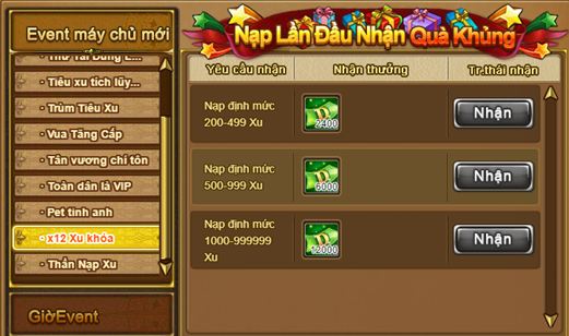 Gunner tham gia nạp xu lần đầu đúng mốc 200 Xu - 500 Xu - 1000 Xu trở lên sẽ nhận hoàn trả thêm x12 Xu Khóa tương ứng với mốc nạp!