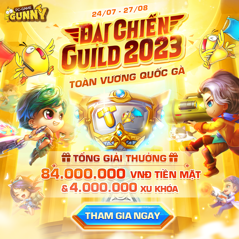 Nhằm tạo sân chơi thi đấu, giao lưu tranh tài giữa tất cả các Guild đang hoạt động trên toàn cõi Vương Quốc Gà, Gunny Team xin trân trọng giới thiệu Giải Đấu Gunny PC có quy mô lớn nhất 2023 với tổng giải thưởng trị giá 84,000,000 VNĐ TIỀN MẶT và 4,000,000 XU KHÓA với tên gọi: GUNNY PC - ĐẠI CHIẾN GUILD 2023 !!