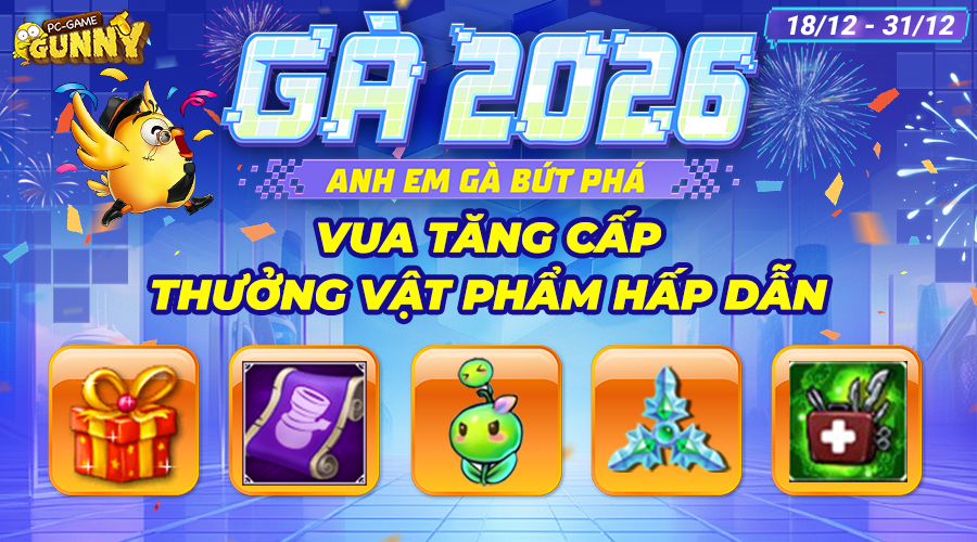 Trong thời gian diễn ra sự kiện tại Landing Page - Mừng máy chủ mới Siêu đặc biệt Gà 2026. Gunner đạt mốc lv 22/25/27/30/31/32/33/34/35/36 nhận thưởng.