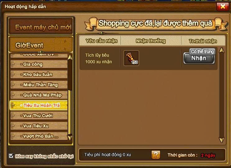 1. Tiêu Xu Hoàn Trả 15% - Tích lũy tiêu 1000 xu nhận 150 xu!