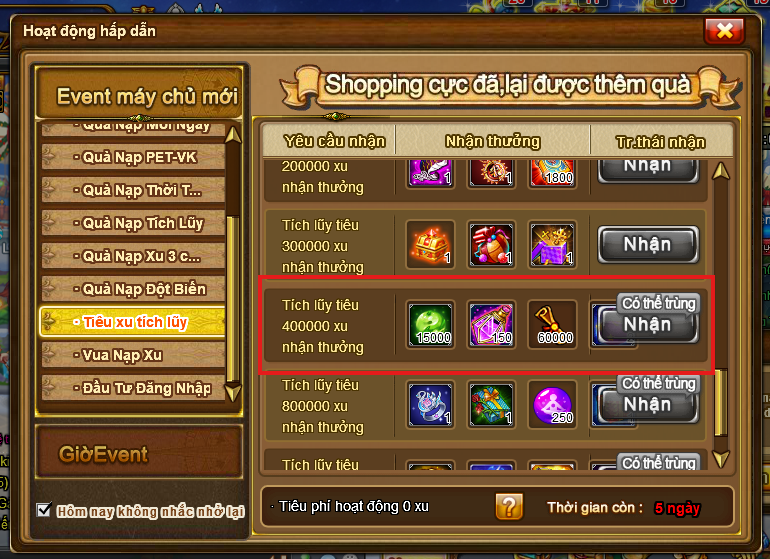 2. Tiêu xu tích lũy đạt mốc 400.000 Xu nhận thêm 15%!